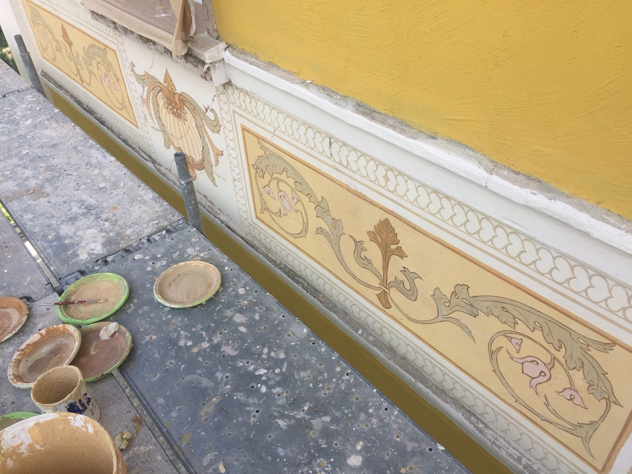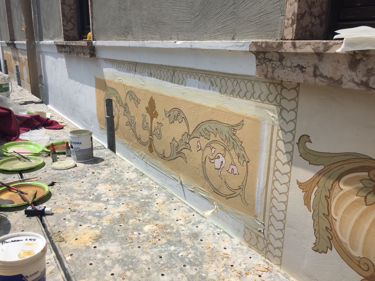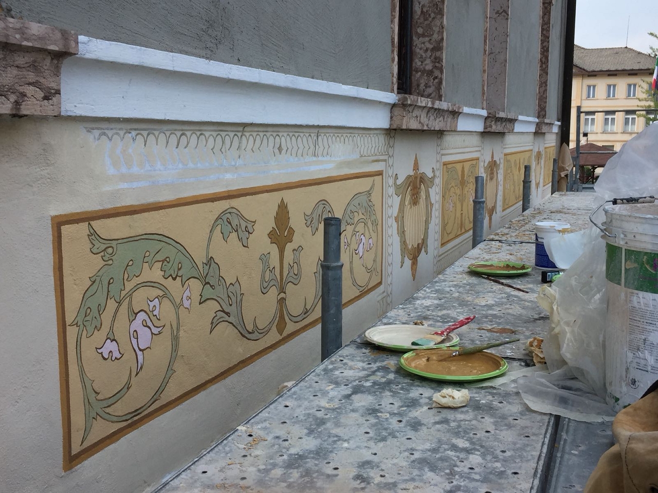 Risanamento delle facciate esterne e restauro dei decori artistici in facciata.