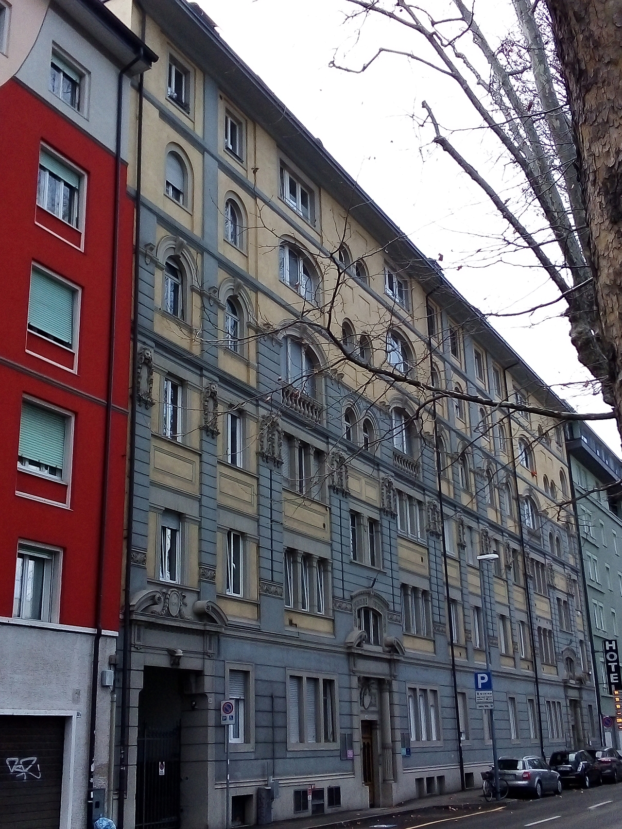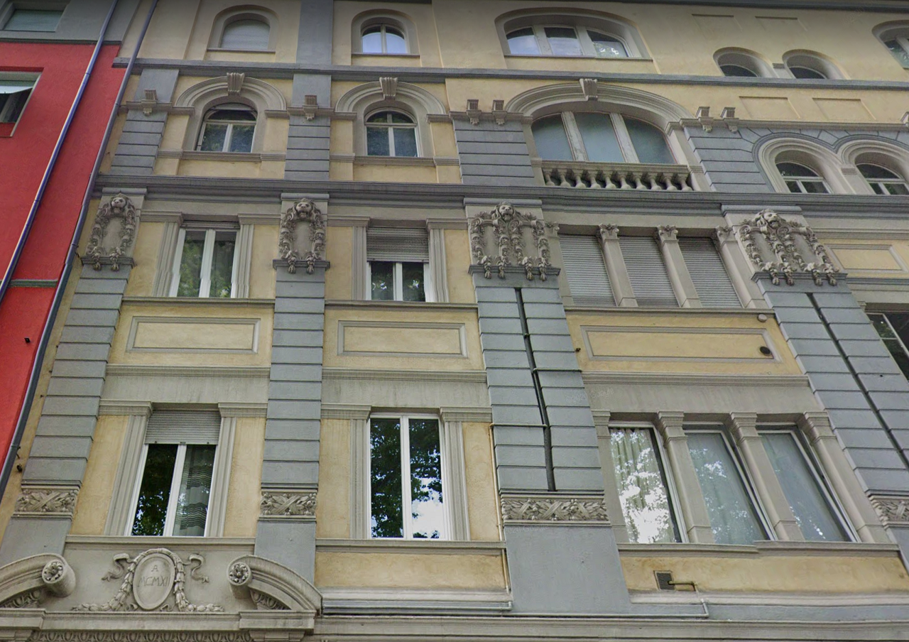 Restauro generale e risanamento delle facciate con ricostruzione storica dei decori d'epoca.