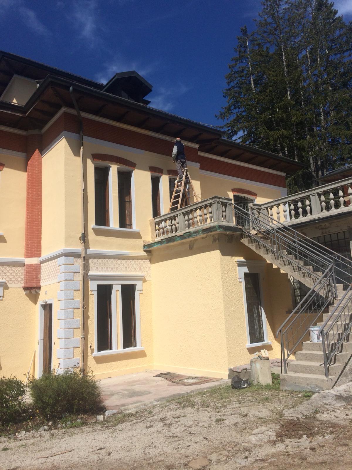 Tinteggiatura generale delle facciate con pittura acril silossanico secondo indicazioni della soprintendenza dei beni culturali di Trento